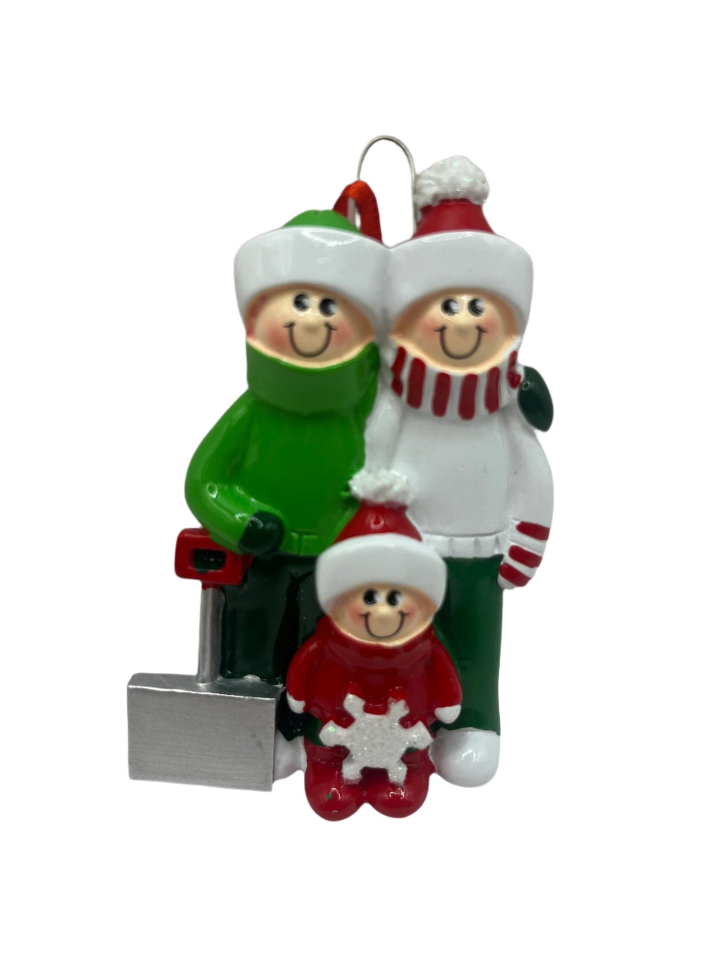 Christmas Family of 3 with Snow Shovel Personalised Tree Ornament