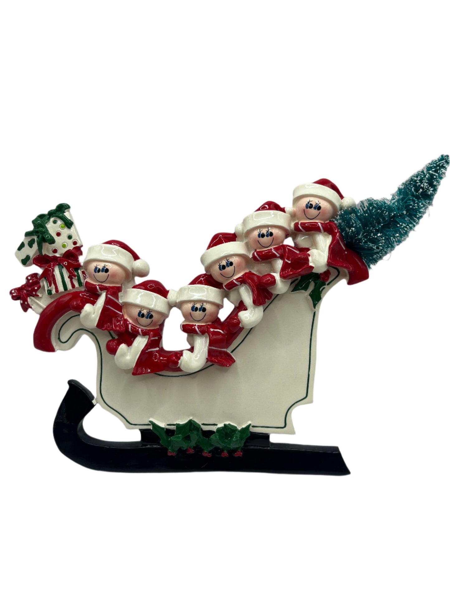 Sleigh Christmas Family of 6 Free Standing Ornament